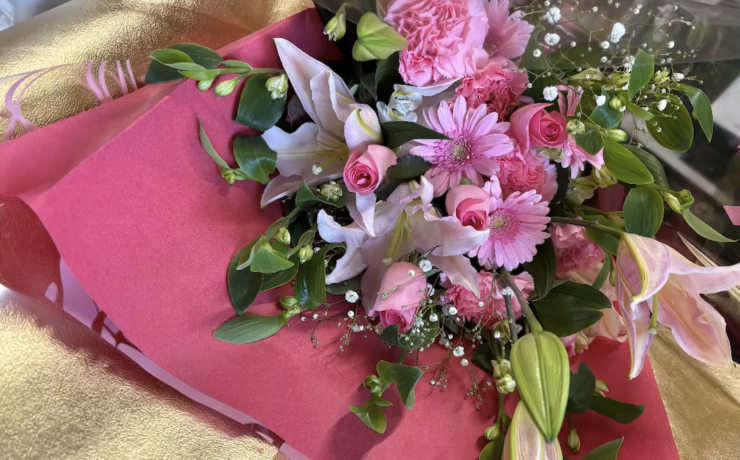 ピンクのブーケ風花束